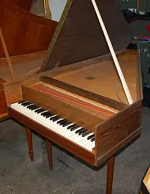 As the authenticist movement developed, it grew ever more devoted to historical rather than revival-style technology. Plexiglas or metal upper and lower guides were abandoned for the historical wooden guides, heavy jack end pins were abandoned, piano-style keyboards were replaced by the lighter historical type,[18] and steel piano-wire strings were replaced by iron or brass. The authenticist instruments have largely vanquished the heavy revival instruments of the earlier 20th century.[19]