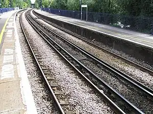 The railway track or permanent way is the elements of railway lines: generally the pairs of rails typically laid on the sleepers or ties embedded in ballast, intended to carry the ordinary trains of a railway. It is described as permanent way because in the earlier days of railway construction, contractors often laid a temporary track to transport spoil and materials about the site; when this work was substantially completed, the temporary track was taken up and the permanent way installed.