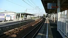 The station has two opposed side platforms connected by a level crossing. The station has automatic turnstiles for the Tranpass system of magnetic fare cards, and is unattended.