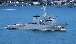 The Hiuchi AMS class replaced the Auxiliary Service Utility class (ASU). The primary mission of these vessels is to support training exercises of other ships, including shooting practice and torpedo launching practice.[1]