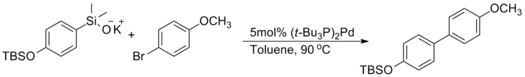 - Denmark, S. E.; Smith, R. C.; Chang, W.-T. T.; Muhuhi, J. M. (2009), "Cross-Coupling Reactions of Aromatic and Heteroaromatic Silanolates with Aromatic and Heteroaromatic Halides", Journal of the American Chemical Society, 131 (8): 3104–3118, doi:10.1021/ja8091449, PMC 2765516, PMID 19199785