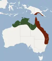 The hoary wattled bat (Chalinolobus nigrogriseus) is a species of vesper bat found in northern Australia and Papua New Guinea. Two subspecies are currently recognised:[2]