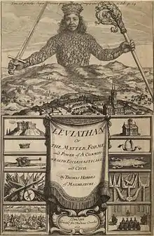 In utilising methods of deductive reasoning and motion science, Hobbes examines human emotion, reason and knowledge to construct his ideas of human nature (moral philosophy).[3] This methodology critically influences his politics, determining the interactions of conflict (in the state of nature) which necessitate the creation of a politically authoritative state to ensure the maintenance of peace and cooperation.[4] This method is used and developed in works such as The Elements of Law (1640), De Cive (1642), Leviathan (1651) and Behemoth (1681).[5]