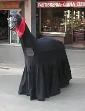 The Santa Tecla Festival takes place at Tarragona from 15 to 24 September and includes the saint's day, 23 September.[49] A number of animals, real and mythical, are impersonated in the parades that form a major part of the festivities. Among them is a larger-than-life Mulassa (mule) carried by two dancers who are hidden under its skirts, apart from their legs.