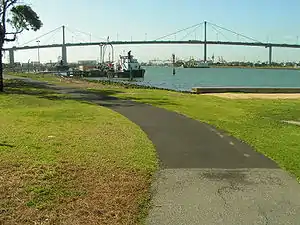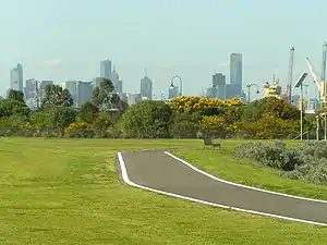 The Hobsons Bay Coastal Trail is a shared use path for cyclists and pedestrians, which follows the coast line of Hobsons Bay in the inner western suburbs in Melbourne, Victoria, Australia.[1][2][3] The trail forms part of the western half of the Bayside Trail which encircles Port Phillip. It runs from the west side of the Westgate bridge, south and along the coast, finishing at the Skeleton Creek Trail in Sanctuary Lakes.