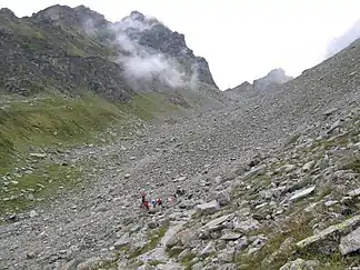 The mountain may be ascended from the lake of Vermuntsee (1,743 m / 3½ hours) or from the Tübinger Hut (2,190 m / 2¾ hours) up the little valley of Gantschettatäli (2,300 m) to the south and the Hochmadererjoch saddle (2,505 m / 1 hour).
