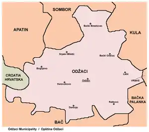 The territory of municipality of Odžaci covers an area of 41.115,89 hectares. It consists of 9 Cadastral municipalities: Odžaci, Bački Gračac, Bački Brestovac, Srpski Miletić, Bogojevo, Karavukovo, Deronje, Ratkovo and Lalić, which are at the same time settlements.