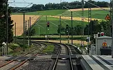 Hoffenheim station (German: Bahnhof Hoffenheim) is a railway station in the municipality of Hoffenheim, located in the Rhein-Neckar-Kreis in Baden-Württemberg, Germany.
