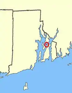 Hog Island, circled in red, in the inner part of Narragansett Bay