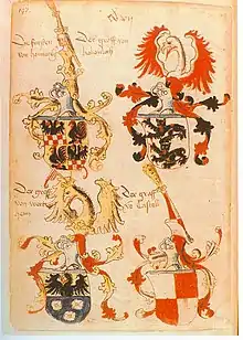| Godfrey III | 1290 | 1354-1368 | 1368 | Lordship of Brauneck | Agnes of Castell[14] (d.14 September 1395) five children | ||