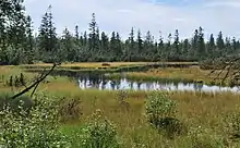 On the southern part of the plateau is the Hohlohmiss, a misse with raised bogs and several bog ponds, including the Great and Little Hohlohsee. Like the neighbouring Wildseemoor, these are biogenic and not geomorphological landforms. They have developed since the last ice age about 10,000 years ago due to the high rainfall on the acidic klebsands of the upper conglomerate horizon of Middle Bunter.[5] Due to their outstanding ecological importance, the Hohlohmiss and Wildseemoor have been protected as part of the Kaltenbronn Nature Reserve.