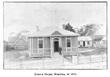 The first customhouse was erected on Gibson's Quay, where the current Department of Conservation annex stands, in July 1865. It was enlarged the following year.[1] The current building was erected by the Public Works Department in 1897 at a cost of £400 to a design by John Campbell. After the Hokitika port closed in 1954, the building was no longer needed as a custom house, and was used by the Ministry of Works. In 1985 it was taken over by the local council and shifted to its present site, where it was officially reported in March 1990.[2]