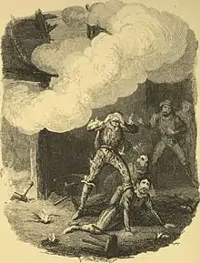 It was after the failure of the plot that the fugitives took shelter in Holbeche House, owned by Stephen Lyttelton. They had taken supplies from Warwick Castle on 6 November and weapons and gunpowder from Hewell Grange on 7 November, but the powder became damp in the rain. After arriving at Holbeche House at about 10 pm, several were maimed when gunpowder left to dry in front of the fire was ignited by a stray spark. At about noon the next day, 8 November 1605, the house was surrounded by a posse led by Richard Walsh (the Sheriff of Worcestershire), originally seeking those responsible for the raid at Warwick Castle. Most of the plotters were either killed or wounded in the ensuing fight. Some walls have holes from muskets used in the storming of the house in 1605. Those still alive were taken to London and later tried and executed.[2]