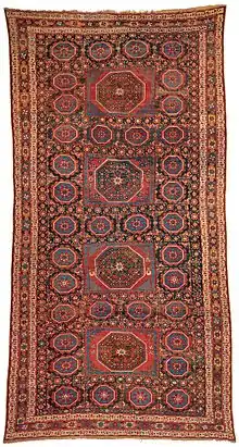 - Type III: Large-pattern Holbein. The motifs in the field inside the border consist of one or two large squares filled with octagons, placed regularly, and separated from each other and from the borders by narrow stripes. There are no secondary "gul (in armenian "vard", i.e. "rose")" motifs. The carpet in Holbein's The Ambassadors is of this type.[4][5]