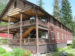 In 1896, James Henry Holden made his first claim on the area which would later become Holden Village.[6] However, because of the expense and difficulty involved in transporting copper from the isolated mine, the operation did not begin its full productivity until 1937. By 1938 the mine had become successful and processed 2,000 short tons (1,800 tonnes) of copper ore daily.[6] With the success of the mine came miners and their families, still recovering from the Great Depression. The Howe Sound Company, which owned the mine at the time, built a townsite on the north side of Railroad Creek soon after the mine began to thrive. The townsite, Holden, Washington, consisted of a number of dormitories, a gymnasium, bowling alley, mess hall, school, and hospital, among other things. West of the townsite was a patch of small houses intended for miners with families in tow.