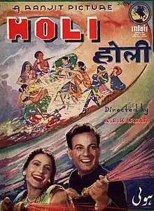 Holi (Festival Of Colour) is a 1940 Hindi/Urdu social drama film directed by A. R. Kardar.[1] Holi was produced by Ranjit Movietone and had music composed by Khemchand Prakash with lyrics by D. N. Madhok.[2] It had Khursheed and Motilal starring in the lead with Sitara Devi, Ishwarlal, Keshavrao Date, Dixit, Ghory and Manohar Kapoor.[3]
