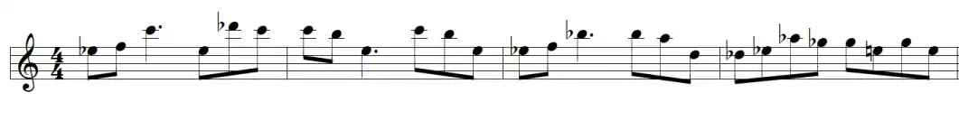 The piece starts with an introduction with lush instrumentation in C Major, moving to F minor and back to C Major with the following theme: