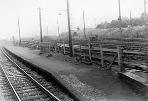 The station halt initially-known as Hollin Well and Annesley opened on the London extension of the Great Central Railway on 1 November 1901, serving Notts Golf Club's then new Hollinwell golf course; the club had guaranteed £200 a year in receipts.[1] The station was on the south edge of the golf course with no road access, and had two wooden platforms and a wood footbridge. Initially, two trains a day serving the station were timetabled in Bradshaw's Guide, but the station soon became excluded from timetables, presumably for private use. By 1941, the spelling had changed to Hollinwell. It closed on 10 September 1962.[2]