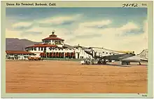 United Aircraft and Transport Corporation (UA&T) was a holding company created in 1928 that included Boeing Aircraft and United Air Lines, itself a holding company for a collection of small airlines that continued to operate under their own names. One of these airlines was Pacific Air Transport (PAT), which Boeing had acquired because of PAT's west coast mail contract in January 1928.[9] UA&T sought a site for a new airport for PAT and found one in Burbank. UA&T had the benefit of surveys that the Aeronautics Department of the Los Angeles Chamber of Commerce had conducted starting in 1926 to identify potential airport sites.[10]