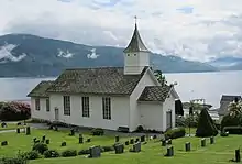 Holmedal Church (Norwegian: Holmedal kyrkje) is a parish church of the Church of Norway in Kvinnherad Municipality in Vestland county, Norway. It is located in the village of Utåker. It is one of the three churches for the Husnes og Holmedal parish which is part of the Sunnhordland prosti (deanery) in the Diocese of Bjørgvin. The white, wooden church was built in a long church design in 1882 using plans drawn up by the architect F. Øvrevik. The church seats about 215 people.[1][2]