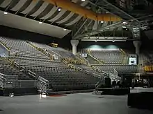 Student seating is located at midcourt for both volleyball, and behind the end line for basketball.