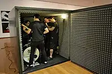 "Box Sized Die" is a 183 cm black metal cube padded with acoustic foam. Referencing a minimalist sculpture by Tony Smith, Onofre invited Holocausto Canibal to perform inside it, joining the ranks of Konkhra, Gorod, among other bands that were also part of this performance. The work has no fixed duration, instead the idea is that the band performs until they feel that the oxygen is running out. The performance ends when the band opens the box's door due to fear of asphyxiation.[37]