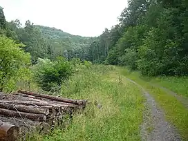 The Holpertal is a valley, just one and a half kilometres long, in the central Palatine Forest of Germany. It lies within the municipality of Ramberg in the county of Südliche Weinstraße in the state of Rhineland-Palatinate. Its V-shaped cross-section was cut by the waters of the Holperbach stream, which has incised deeply into the rock layers of the Lower Bunter. The valley floor climbs from an elevation of about 250 metres to well over 400 metres. Its slopes are covered with mixed forest and sweet chestnut. Whilst at one time, the valley produced raw materials for the traditional broom and brush-making industries, today forestry and tourism predominate.