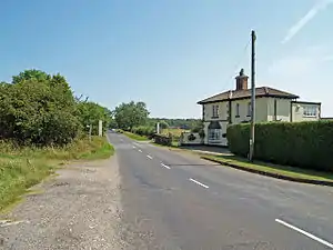 The station was initially named Holton-le-Clay and Tetney[2] to reflect its location one mile to the south of the Lincolnshire village of Holton-le-Clay and slightly closer to Tetney to the east.[7] It consisted of staggered platforms either side of the level crossing over the Tetney road;[8] the down platform to the north and the up to the south.[9] A signal box constructed in the standard East Lincolnshire Railway pattern stood on the north side of the crossing.[10] It controlled the crossing and a small goods yard situated to the south of the crossing on the down side.[11][12] The yard was served by a single siding which trailed off the down line to end in cattle dock.[12] The station house, built in the same style as those provided at Fotherby Halt and Utterby Halt,[7] stood in the north-eastern corner of the yard.[12]