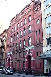 The Holy Cross Parish was established in 1852 and a chapel erected, which the congregation quickly outgrew.[2] In 1854, a new building was constructed and dedicated, but lightning struck this second structure in 1867, and the ensuing fire severely damaged it. The current church was constructed to a design by Henry Engelbert on the site of the damaged building and completed in 1870.[3][4] It is notable as the oldest building on 42nd Street.[5] The Holy Cross School, located behind the church at 332 West 43rd Street, was built in 1887 to a design by Lawrence J. O'Connor.[4]