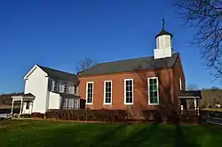 The cornerstone for Holy Rosary Church, a Roman Catholic church in Manton was laid November 2, 1844.[3] The original church is not the one that is on this site. A few years later, in 1848, a new church was built. This, the present building, was blessed on November 19, 1848. The building was built of brick with an overall size of 20 x 60 feet.