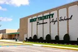 Holy Trinity High School is a co-educational learning environment located centrally in Hicksville, Nassau County, New York on Long Island. Education is based on New York State Education Standards with a strong emphasis on Religious Studies. It is operated by the Roman Catholic Diocese of Rockville Centre. It is particularly well known for its Performing Arts Department and theatrical performances.