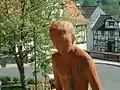 The three carved figures are meant to awaken passersby's curiosity about Homberg and get them to have a look behind the town's walls. The same artist created another artwork before the Schwalm-Eder district offices above the Old Graveyard park.