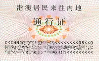 | Mainland Travel Permit for Hong Kong and Macao Residents 港澳居民来往内地通行证 | |