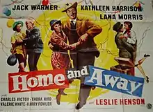 Home and Away is a 1956 British second feature drama film directed by Vernon Sewell and starring Jack Warner and Kathleen Harrison.[1] It depicts the life of an ordinary working-class man after he wins the football pools.[2][3] The film reunited Warner and Harrison who had previously appeared together in the Huggetts series of films.[4]