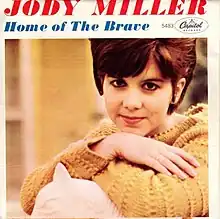 "Home of the Brave" is a song recorded and made successful by American singer Jody Miller. It was composed by songwriters Barry Mann and Cynthia Weil. Released as a single by Capitol Records in 1965, "Home of the Brave" reached the pop charts in the United States, Canada and Australia. It was characterized as a protest song for its discussion of social issues during the sixties decade. It was among Miller's most commercially successful recordings in her career despite being banned from radio stations. "Home of the Brave" was released on an album of the same name in 1965.
