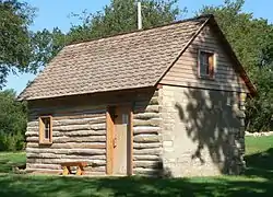 The Home on the Range Cabin, near Smith Center, Kansas, is a log cabin built by Dr. Brewster Higley VI in 1875. It is associated with the song "Home on the Range", written by Higley as a poem in 1872 while living on a dugout that he built on the banks of the Beaver Creek. Higley's friend Dan Kelley set the poem to music; the song eventually became famous and is now the state song of Kansas.[2]