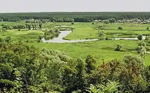The park is composed of a series of protected and recreational areas along both banks of the middle reaches of the Donets River and the Gomolshy River. The right banks of the river is hilly spurs of the Middle Russian Uplands, ranging up to 100 meters above the river. The left bank is generally flat plain of the East European Plain[1] Included on the grounds are many archaeological sites and monuments of historical importance from all eras of Ukrainian history, from the Bronze Age (second millennium BC) to the time of Kyivan Rus.