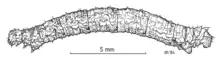 The eggs are pale yellow when first laid.[7] They turn dark reddish-brown for some days before the young larva emerges.[7] The young larva is rather stout, dark brownish-black with numerous fine parallel ochreous lines the whole body is covered with rather long bristles.[7] It is said to resemble "the fruiting body of a minute knobbed fungus".[11] The larvae of this species are known to be predated upon by mice as well as by Cermatulus nasalis nasalis.[13][16] H. megasilata pupates on the ground inside cocoon hidden in a dead leaf.[11] This species probably hibernates in the imago state during the winter months.[7] Adults are on the wing from October until April.[7] Adults are nocturnal, flying during the evening from dusk.[11] They are attracted to light.[11]
