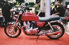 In 2007, Honda showed two new concepts: the CB1100R and the CB1100F. Both were highly reminiscent of the original CB1100F/R, even sporting dual rear shocks with remote fluid reservoirs. Honda showed a revised concept at the 2009 Tokyo Motor Show called the CB1100.[4][5] It was shown in two variants. One being more standard while the other more 'cafe-racer' style (black exhaust, black fender, bikini fairing, tapered rear seat).[4]