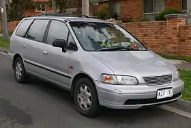 The first-generation Odyssey was a raised wagon from Honda that was launched in Japan and North America in 1994.[4] Based on the Accord sedan, it was offered with an optional 4WD (with RA2 and RA4 chassis), and from 1997 with a 3.0-litre V6 J30A engine with the RA5 chassis code (front-wheel drive only). L and Aero models were equipped with a sunroof. All the JDM Odysseys had a dual air conditioning system, separate for the front and rear seat rows. Since the first generation all the models have been six- or seven-seater versions.