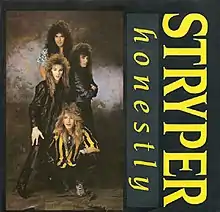 "Honestly" is a power ballad by the American Christian metal band Stryper. The song was the band's fifth single and their highest charting on the Billboard Hot 100. It became one of the most requested songs on MTV.[1] "Honestly" is one of Stryper's best-known songs, peaking at No. 23 on the Billboard Hot 100,[2] and remains as the band's only top 40 hit on that chart.