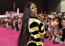 Prior to appearing on Drag Race, Davenport was a frequent competitor in drag pageants, where she amassed a total of 18 titles by 2018.[51][52] The first pageant she ever competed in was Miss Stonewall, which she attempted four times before winning in 2015.[53][54] Fourteen of her victories fell in the three-year period between 2013 and 2016.[34] Notable among these was the national crown of Miss'd America 2015.[3][35][55] Concurrent with that reign, she held seven other titles.[54][56] In February 2018, Davenport won the Miss Paradise pageant in Asbury Park, New Jersey.[57] She had been performing at Paradise, the nightclub that hosts that pageant, since Sahara Davenport first brought her there years earlier.[9]