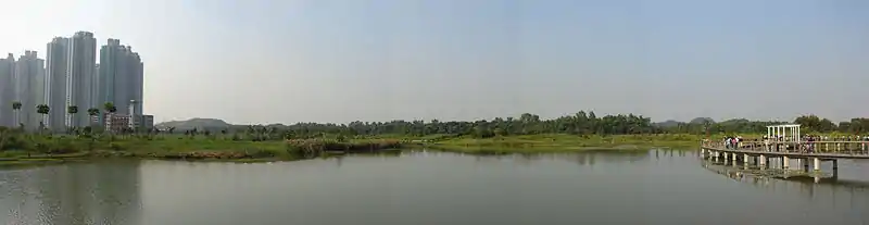 Hong Kong Wetland Park is a conservation, education and tourism facility, located at the northern part of Tin Shui Wai, in Yuen Long. It was to be an ecological mitigation area (EMA) for the wetlands lost due to Tin Shui Wai New Town development.