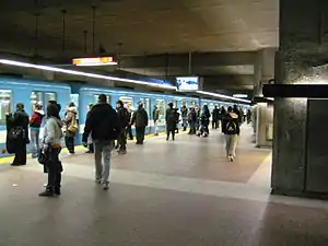 Honoré-Beaugrand station is a Montreal Metro station in the borough of Mercier–Hochelaga-Maisonneuve in Montreal, Quebec, Canada.[4] It is operated by the Société de transport de Montréal (STM) and is the eastern terminus of the Green Line. It is located in the district of Tétreaultville.[4] The station opened on June 6, 1976, replacing Frontenac station as the terminus.