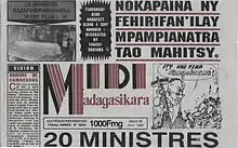 - "Min successifs". mcp.gov.mg. 2011. Retrieved 26 August 2011.