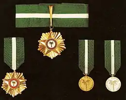 The Ribbon of the order is green with a central white stripe.