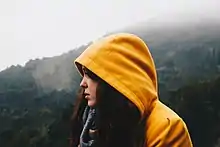 A hood is a kind of headgear that covers most of the head and neck, and sometimes the face. Hoods that cover mainly the sides and top of the head, and leave the face mostly or partly open may be worn for protection from the environment (typically cold weather or rain), for fashion, as a form of traditional dress or uniform, or in the case of knights, an armoured hood is used for protection against bladed weapons. In some cases, hoods are used to prevent the wearer from seeing where they are going (e.g., in cases where a prisoner is hooded). Hoods with eye holes may be used for religious purposes to prevent the wearer from being seen. In the case of Ku Klux Klan members, terrorists, or criminals such as robbers, a hood with eye holes helps prevent identification.