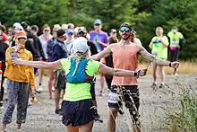 Runners and walkers come into exchange embrace