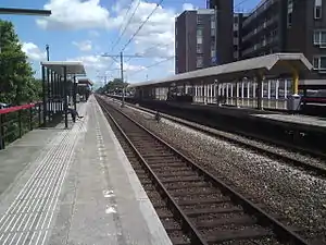 Hoorn Kersenboogerd (Dutch pronunciation: [ˌɦoːr(ə)ŋˌkɛrsə(m)ˈboːɣərt]) is a suburban railway station, in the Kersenboogerd district in Hoorn, Netherlands. The station opened on 29 May 1983,[1] and is on the Zaandam–Enkhuizen railway. About 1 km east of the station is a siding where the "stoptrein" (all-station service) to and from to Hoofddorp can be turned around. From this point the line to Enkhuizen becomes single track. The station is located in the east of Hoorn, and was originally referred to in the plans as Hoorn Oost.
