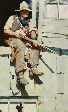 ![]() Hopalong Takes Command, illustration by Frank Schoonover for the 1905 story "The Fight at Buckskin" | |